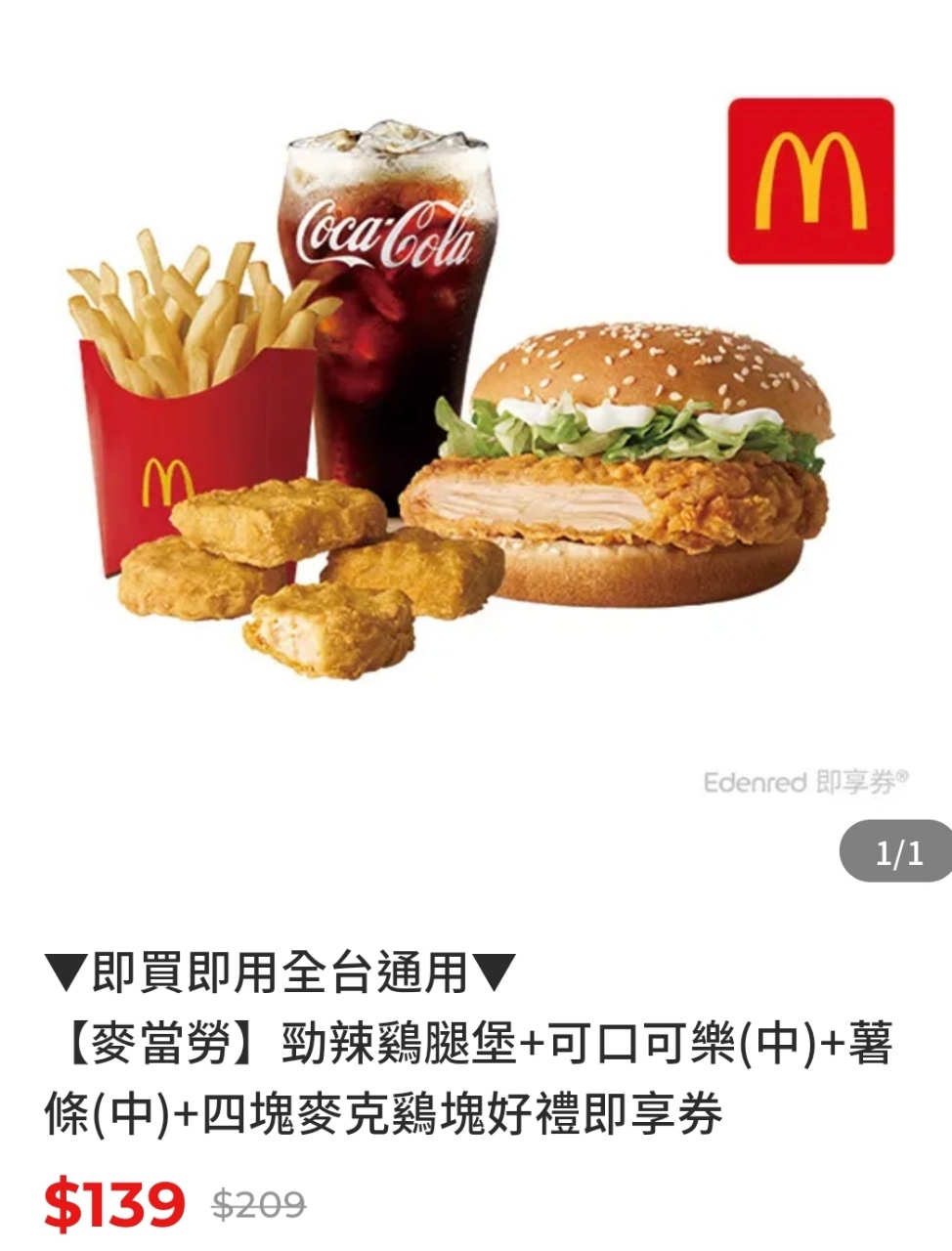 推 a51907: 【麥當勞】買1送1https://momo.dm/3vevER 49.216.188.53 08/01 09:02