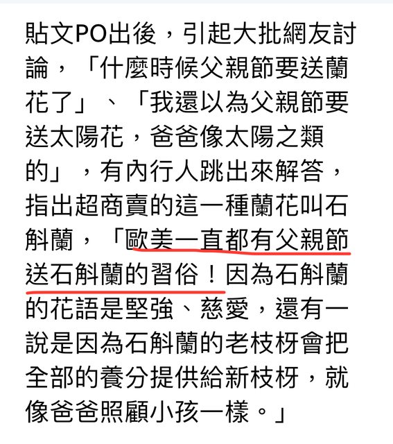 送康乃馨和石斛蘭都是從歐美來的,只是台灣男性節日不受重視…