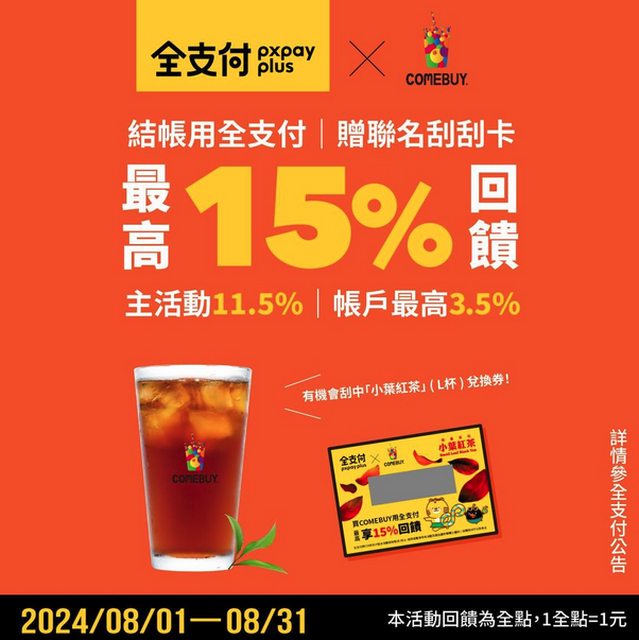 標題[情報] 全支付 x Comebuy 最高15%回饋