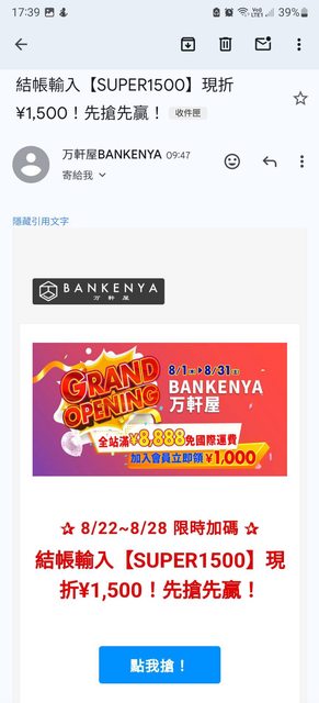 標題[情報] 万軒屋折扣碼 ¥15000折¥1500