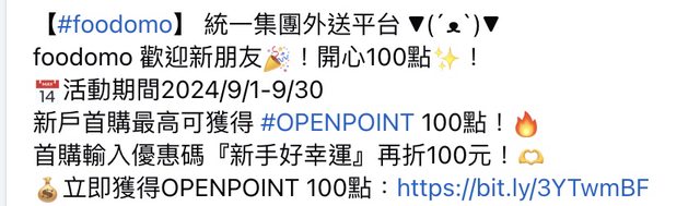 推 OAOtt9911: 星期五首購可以OPENPOINT一點折2元 125.229.63.112 09/04 20:20