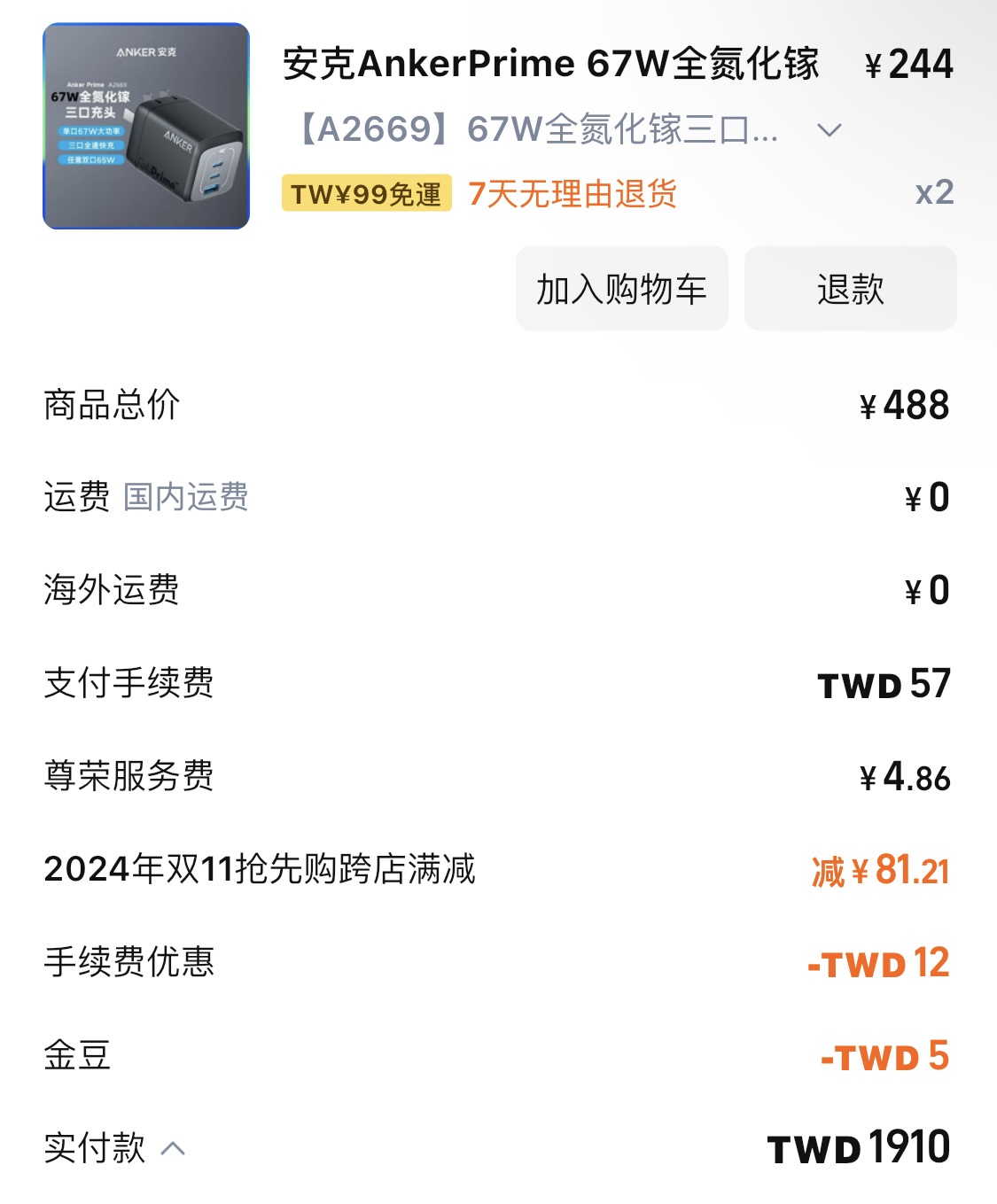 推 tontonplus: 今天才去淘寶買兩顆AnkerPrime67w 1.174.120.23 10/23 18:54