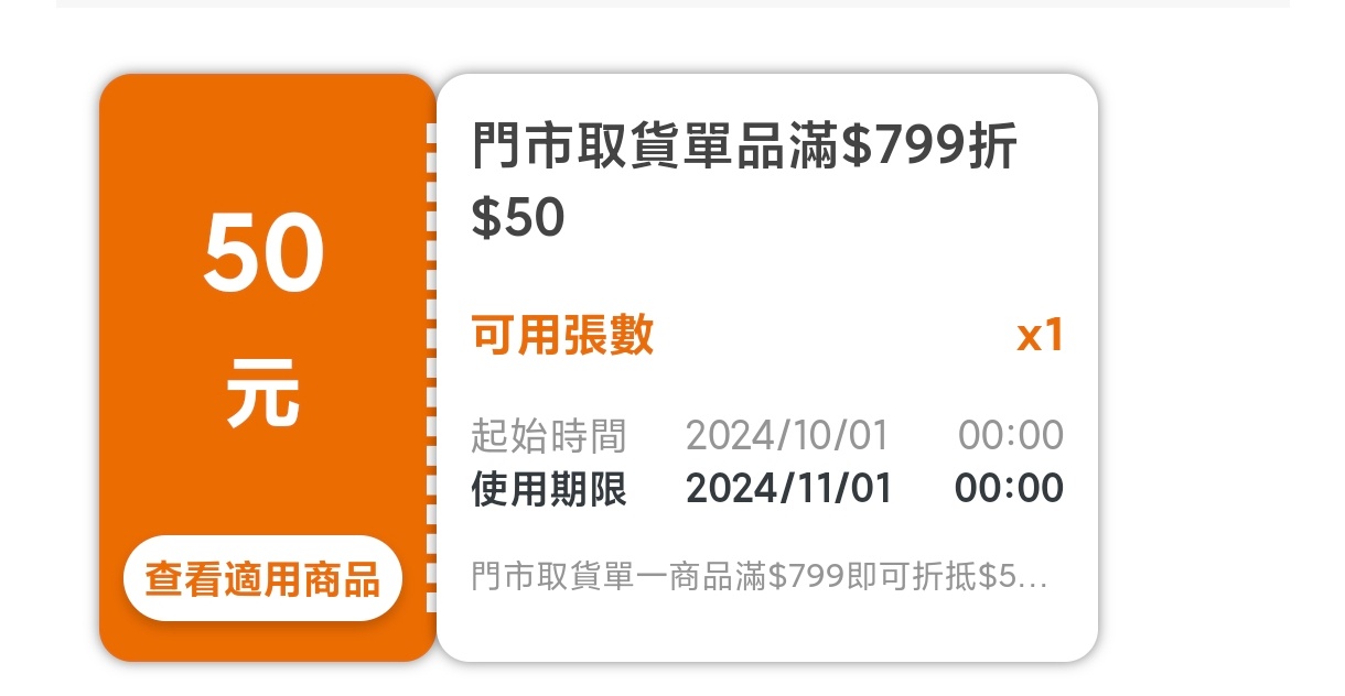 推 CChahaXD: 看到APP有門市折價券799折250,周末去買 36.234.1.249 10/31 12:45