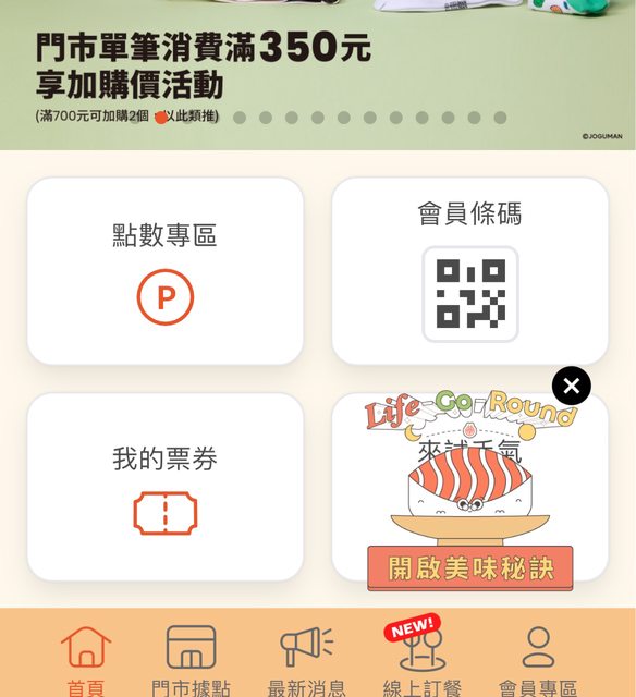 2) 點選 Life-Go-Round 活動頁面 或點選右下角 開啟美味秘訣