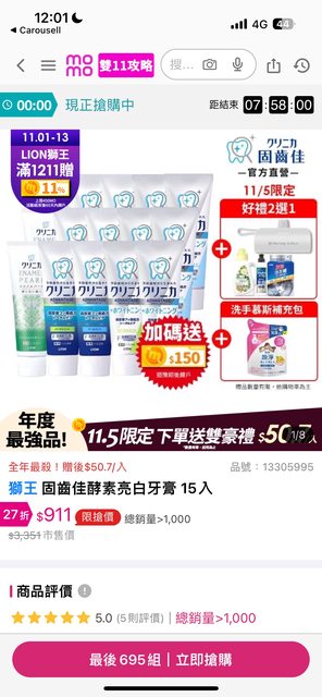 推 cowxyz: 剛看牙膏又是911了欸,獅王漱口水也推一 111.71.113.70 11/07 01:41
