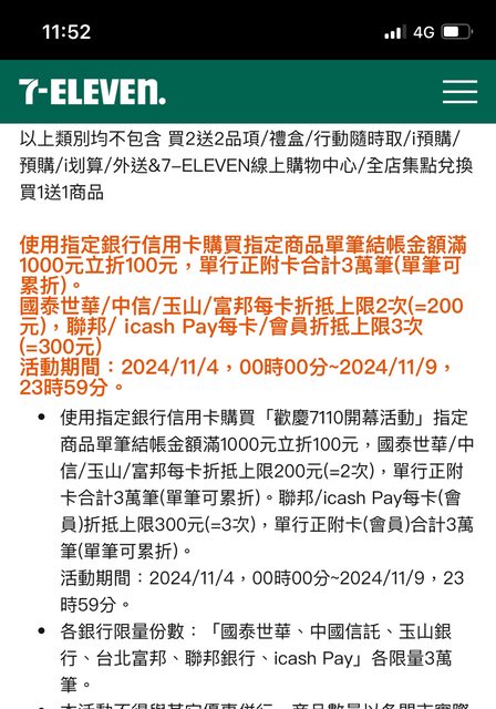 推 xiner: 請問有人知道信用卡滿千折百還有嗎?223.143.209.243 11/07 15:32
