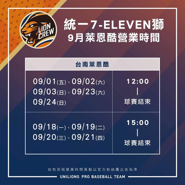 9月萊恩酷營業時間公布啦