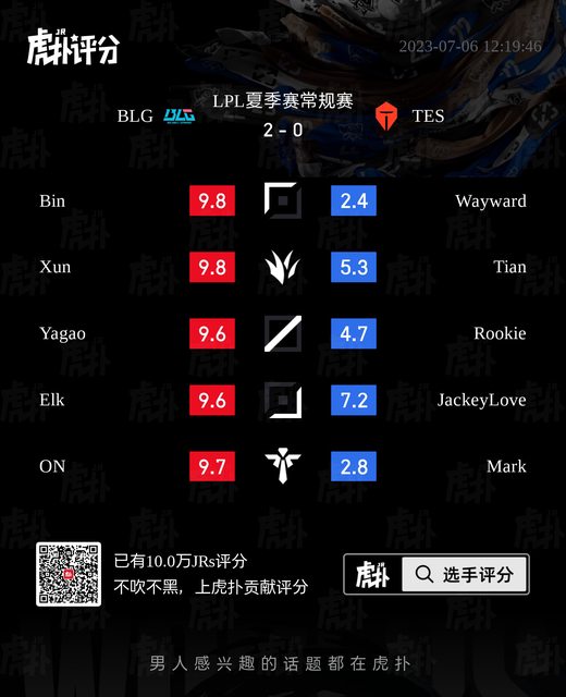 標題[閒聊] BLG vs TES 虎撲賽後評分表