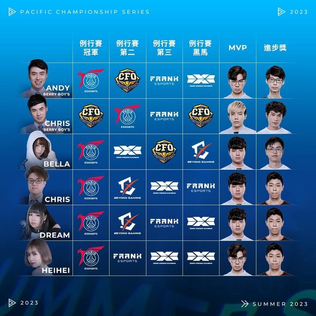 就在明天 PCS 季後賽將正式點燃戰火 在此之前,大家一起來檢視一下開季前各位主播賽評們的例行賽預測吧! 哪位主播賽評的預測跟例行賽賽果最符合呢?哪位又是預測「冥」燈呢? https://i.imgur.com/iHkWwae.jpg