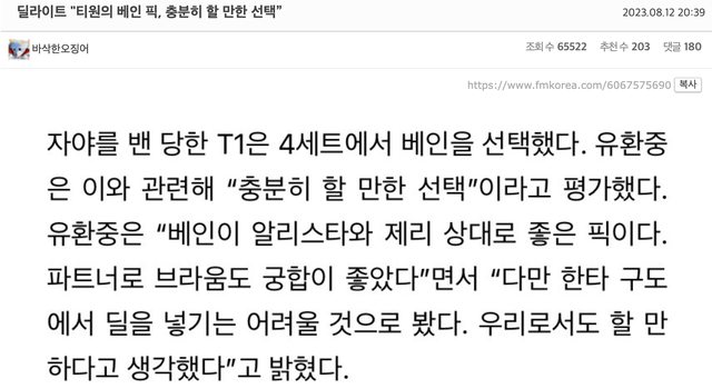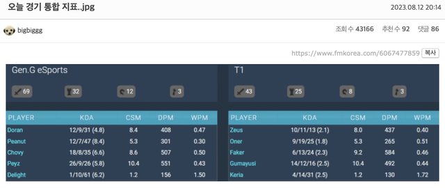 NIEN1EN1997 : 只看這篇還以為T1被3-0,韓網真的低能,尤其是最後 08/13 01:00