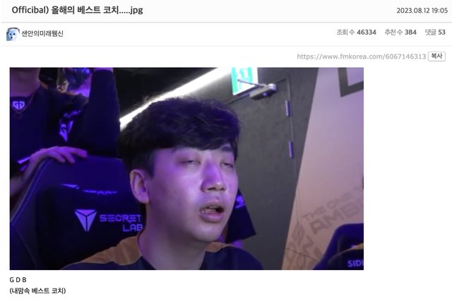 (PS:從19年開始到今年,共五年) ->韓一中 ->事實上真的挺了不起的吧。一支隊伍只要裝上Chovy就能保證進世界賽,確實不像話kk ->Morgan+Arthur都帶得出去 ->甚至還有八強 ->說實話當時的HLE都能帶出國就很令人吃驚了kk ->真是持之以恆 ->這傢伙就是世界賽門票啊kkk (官方)今年最佳監督 https://i.imgur.com/juiQHuk.png