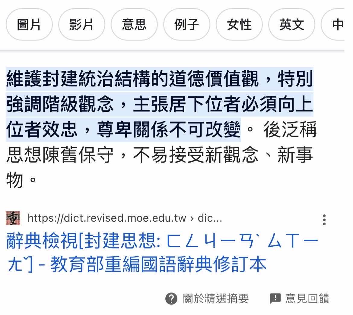 推 freesakura : 某個低能要不要查一下封建思想後來有引申的意思 go 09/01 13:11