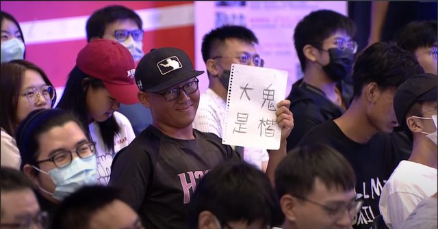 因為是線下賽,加上有攝影師,所以我就帶紙去現場開畫標語,也成功上了電視(但我的