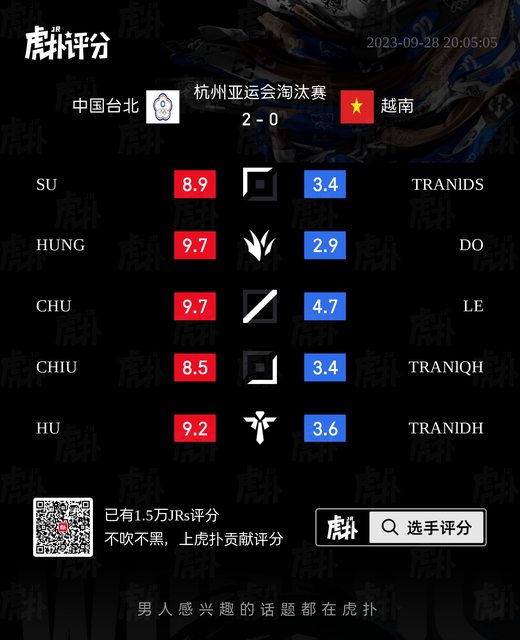 標題[閒聊] 南韓vs中國/中華台北vs越南 虎撲賽後評分