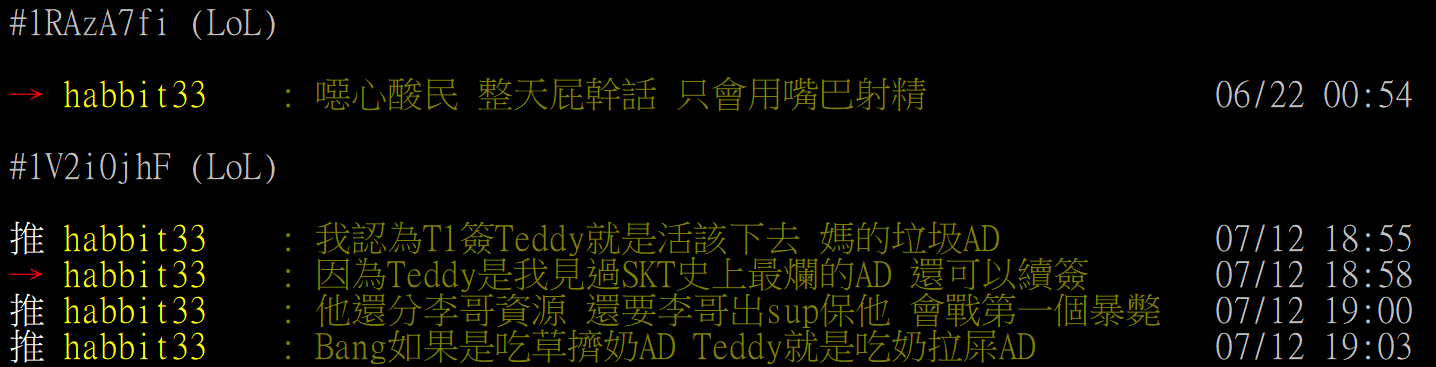 推 diefish5566 : 「噁心酸民 整天屁幹話 只會用嘴巴射精」-habbit33 04/06 15:15