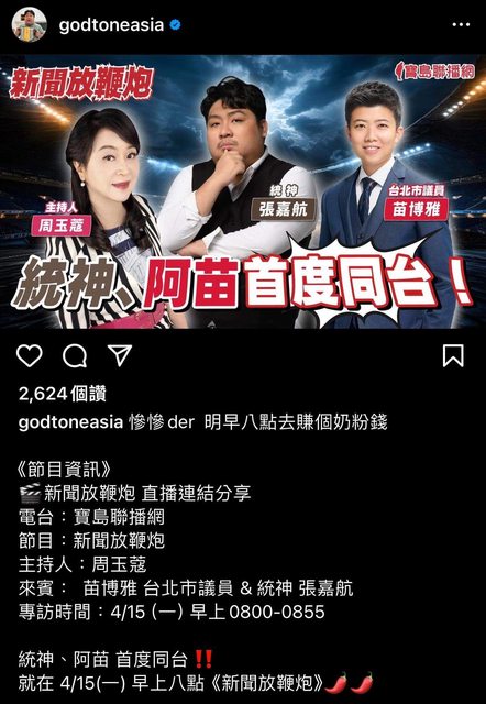 推 s88444777 : 他跟苗又不是首度同台,之前不是有一起上什麼新聞 04/14 23:09