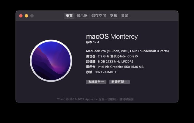 MacBook Pro(13 英寸,2016,四個 Thunderbolt 3 連接埠)有 Touch Bar
