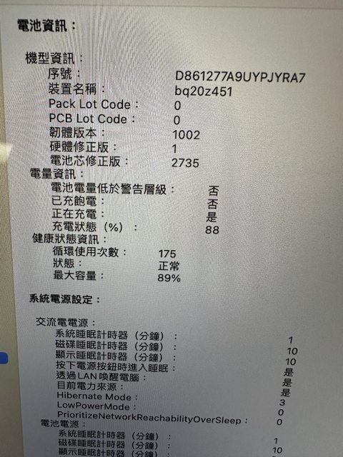 [商品照/補充說明] 電池循環次數175次 公司替換M2換下,功能正常已重置完成