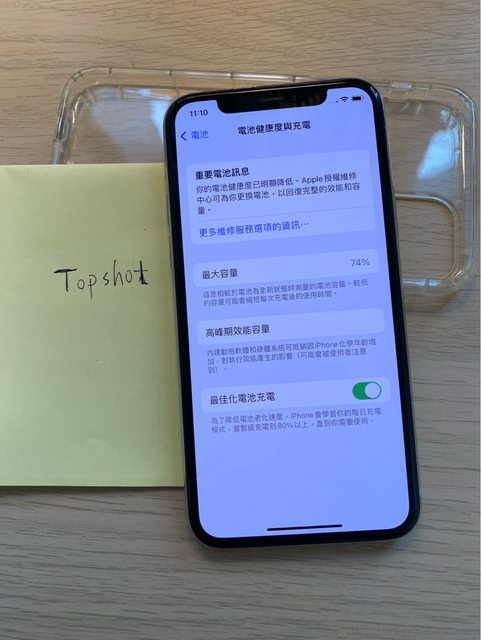 平常使用保護殼及保護貼,原廠電池(健康度74%)無維修過,有正常使用痕跡,無配件,