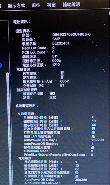 電池: 循環使用次數:193