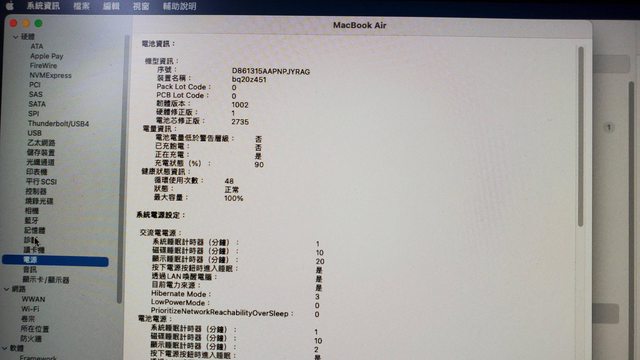 電池健康度100%,電池循環次數48次(如附圖)