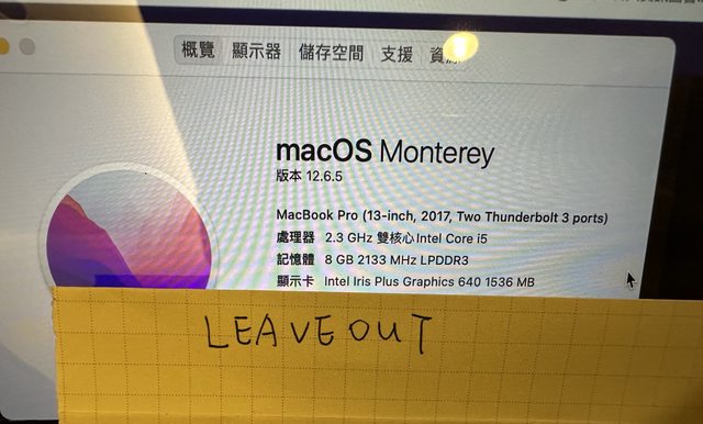 標題[販售] 台中 Macbook Pro 2017 i5/8G/256G