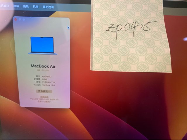 標題[販售] MacBook Air M2 13" 8/512 2022