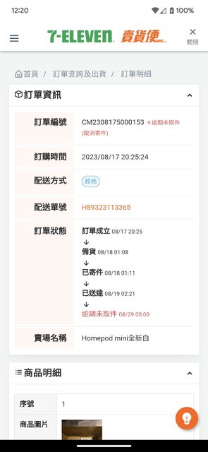 08月19日凌晨02點21分抵達配送門市