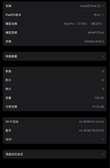 標題[販售] 雙北 iPad pro M1 12.9 128GB WiFi