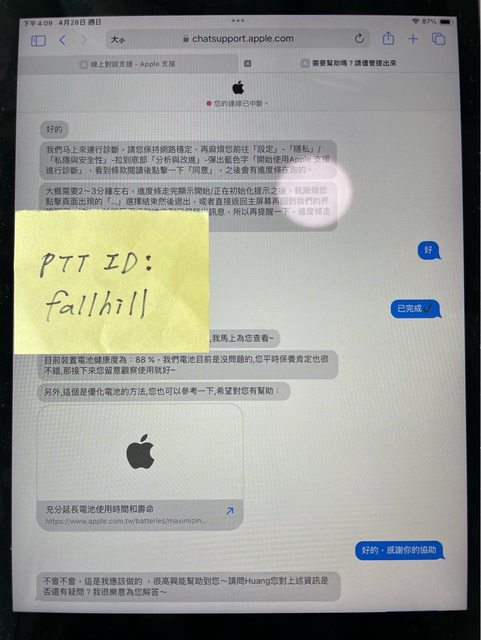 - 電池健康度 4/29 官方檢測為 88%