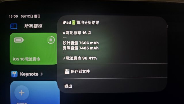 用網友分享的捷徑查詢電池狀態