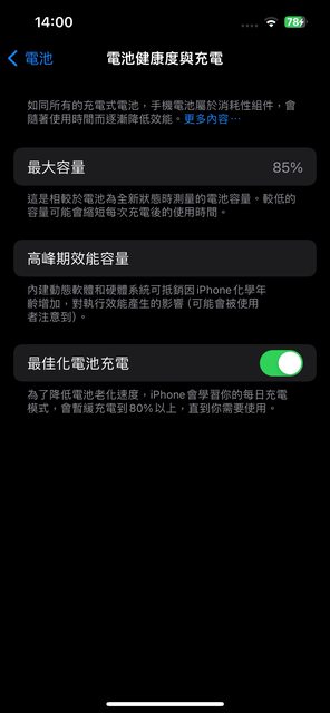 電池健康度85功能正常 無維修/更換零件