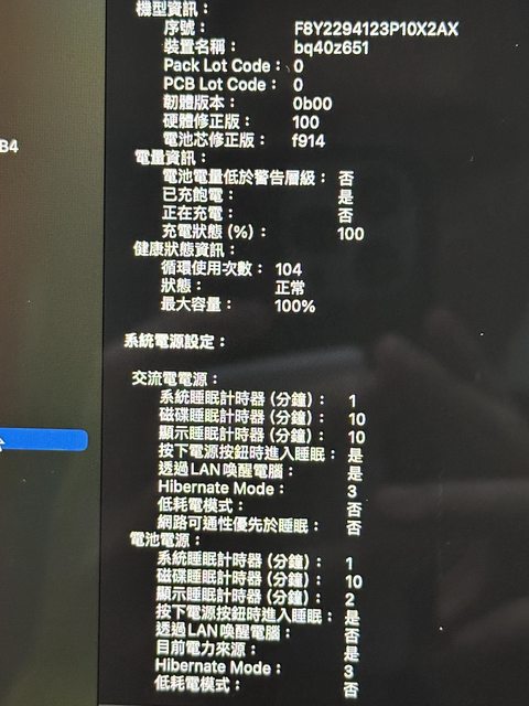 電池健康度100% 循環次數104