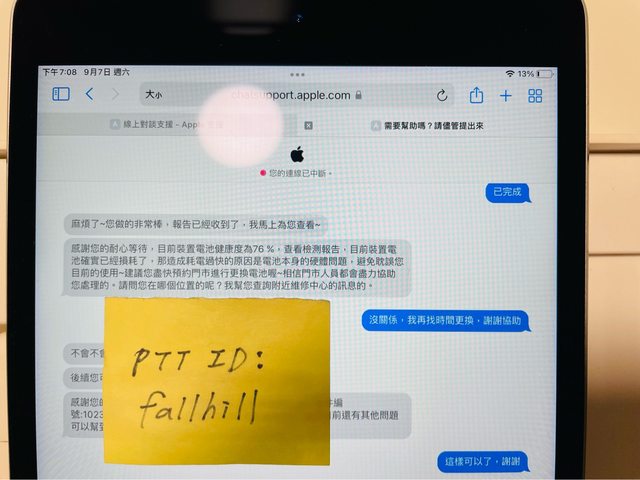 - 電池健康度經檢測為76%