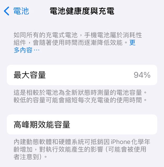 備用機少用, 電池健康度94%