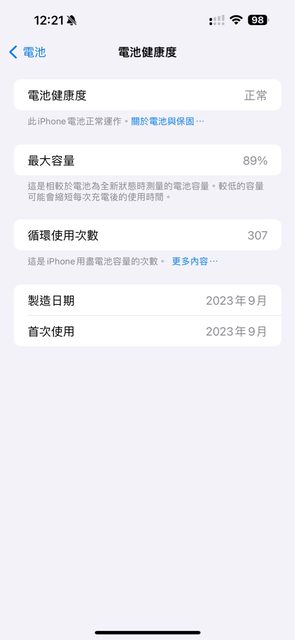 電池健康度89%