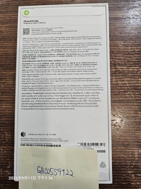 [型號]15 Pro Max 512G 原鈦