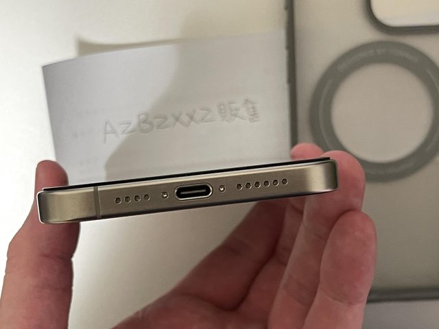 僅手機跟盒裝,無附充電線,有一個官方矽膠陶土色殼,一個 FineWoven 殼後來沒再用,兩個圖拉斯的 Ostand Pro 一個透明一個灰色。