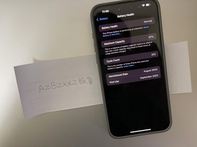 [規格] 256GB 電池健康度 97% 循環 204 次 可能會增加,買的第一天就貼 imos 玻璃保護貼到現在。