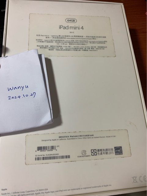 標題[販售] 台北 IPad mini 4 WiFi 64G Gold
