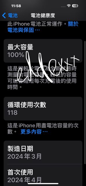 保固及電池健康度為截圖,面交時可再開機確認: