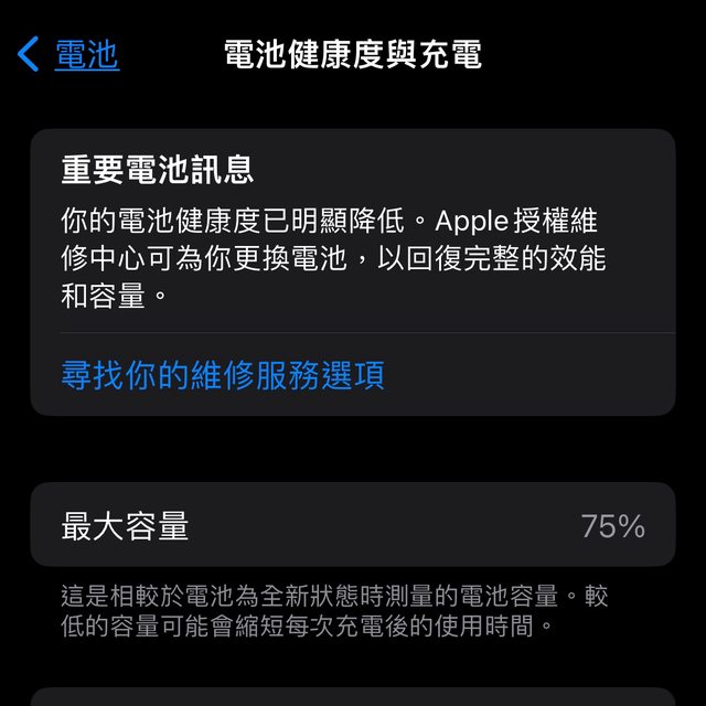 電池健康度75%