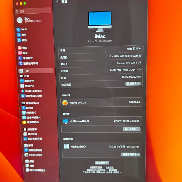 [型號] imac 2017 27吋 retina 5k