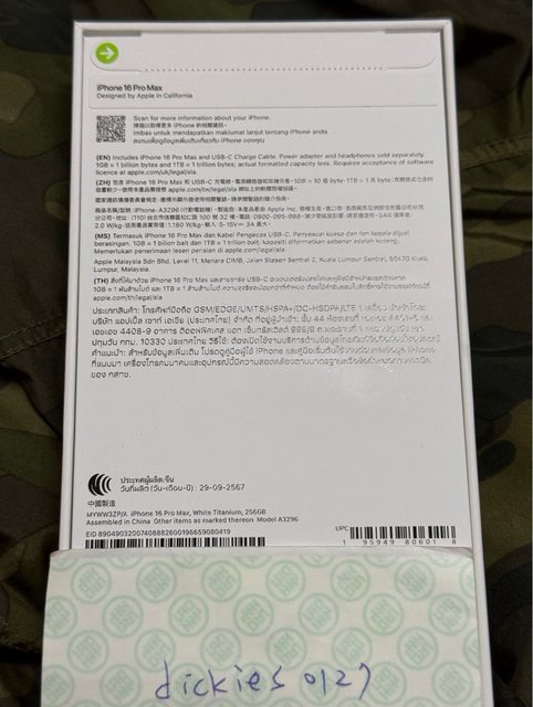 [型號] iphone 16 pm 256g 白鈦