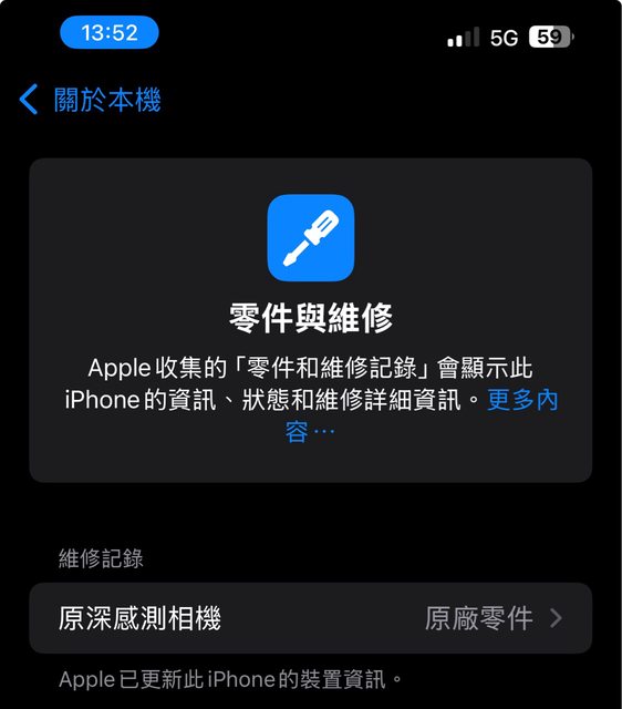 ⑵有維修紀錄,更換過原廠face id零件。