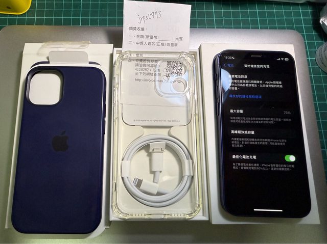 1. 外盒、貼紙、卡針、全新傳輸線、原廠矽膠保護殼(有使用痕跡)、發票
