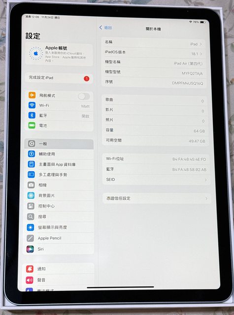 標題[販售] 台中 iPad Air4 wifi 64G 藍色