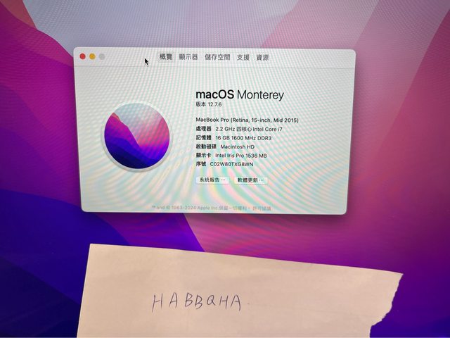 標題[販售] MacBook Pro retina 15’’銀色