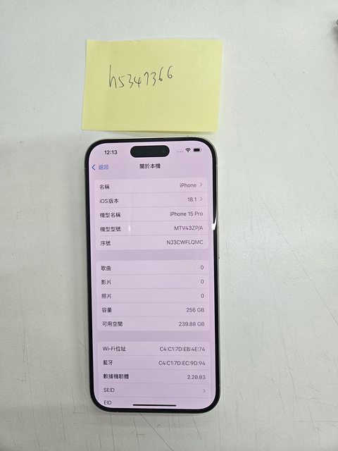 標題[販售] 新竹 iphone 15 pro 256g 白
