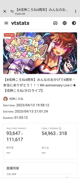 來看一下鴨鴨的Live同接最高多少